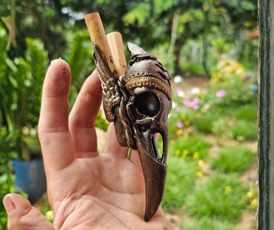Eleve a sua consagração com um instrumento que une a força do reino animal à transmutação mineral. O Kuripe Corvo Ancestral é uma peça de arte ritualística exclusiva, projetada para quem busca profundidade e foco em suas cerimônias de Rapé.